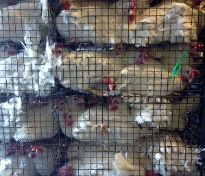 Mother pigs commonly spend most of their lives in metal crates so small the animals can barely move and often suffer painful pressure sores. Hens are packed so tightly into cages that they can barely stretch their wings. Many become tangled in cage wire. These intelligent and sensitive animals, who naturally explore, nest, and form social bonds, are condemned to lives of deprivation and stress.